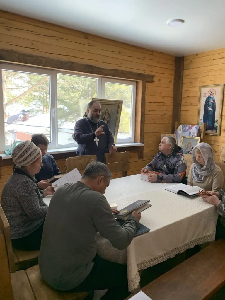 Ко Дню православной книги настоятель Симеоновского храма иерей Андрей Старлытов провел тематическую беседу. Рассказал о православной книге приходской взрослой воскресной школе. Отец Андрей познакомил с историей первой печатной книги, рассказал какие книги относится к духовной литературе, о пользе их чтения.